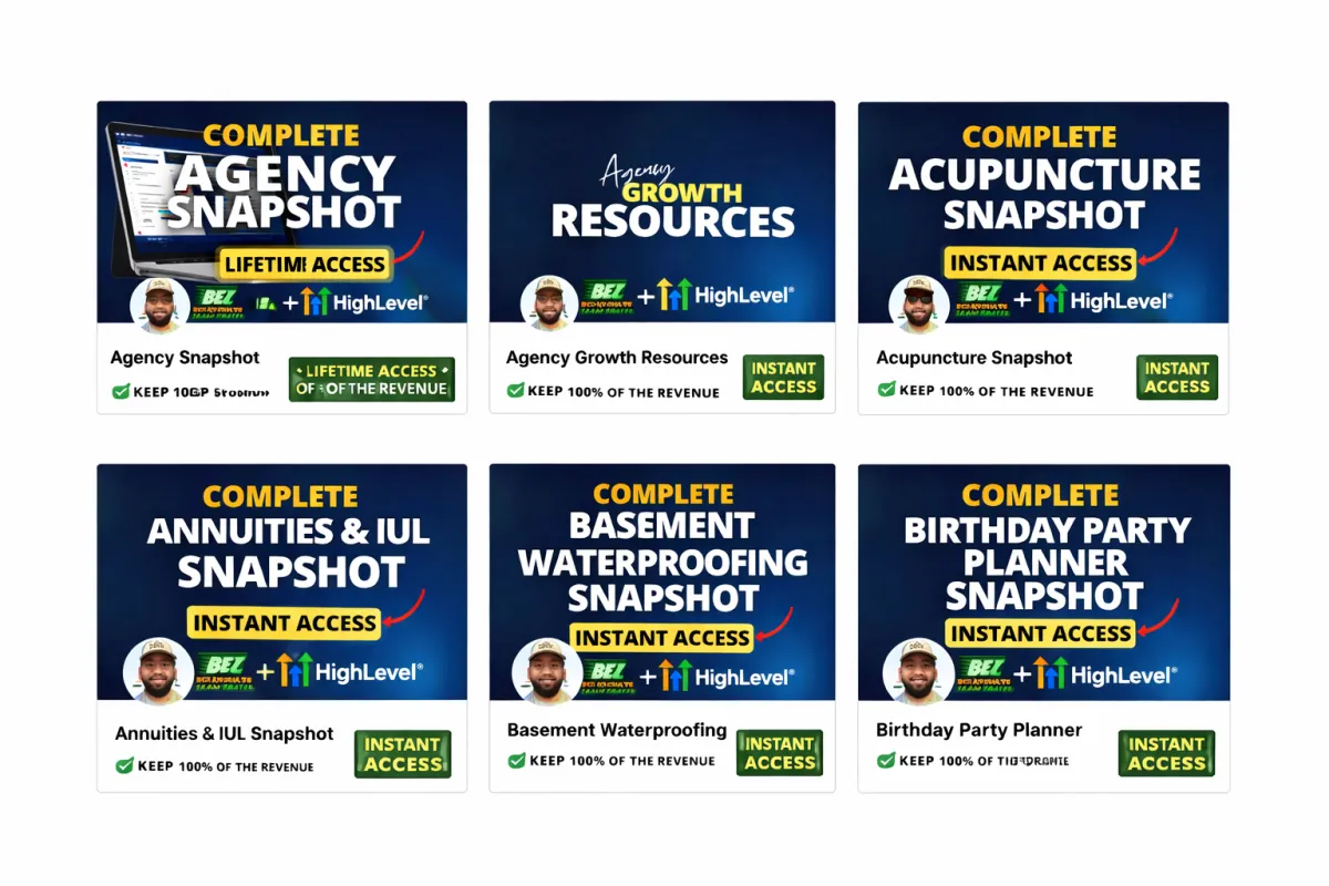 Lifetime Access to ALL snapshots, ALL updates and upgrades moving forward, added to my Agency Growth Partners Community, access to all courses and trainings, as well as front row VIP Q&A access to expert Interviews